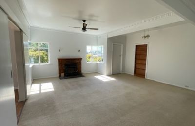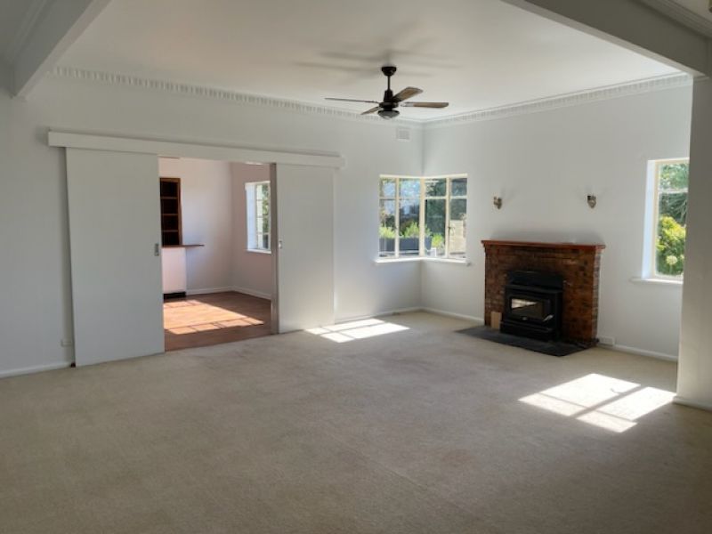 - Large living room with slow combustion heating & ceiling fan