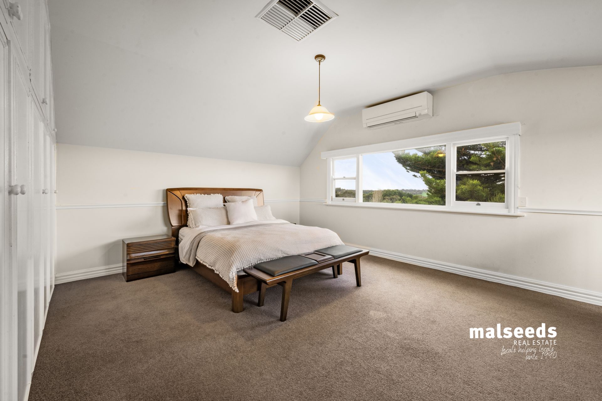 The upper level comprises three spacious bedrooms, all with built-in robes and rural views. A second bathroom services this level, along with accessible attic storage for additional practicality.