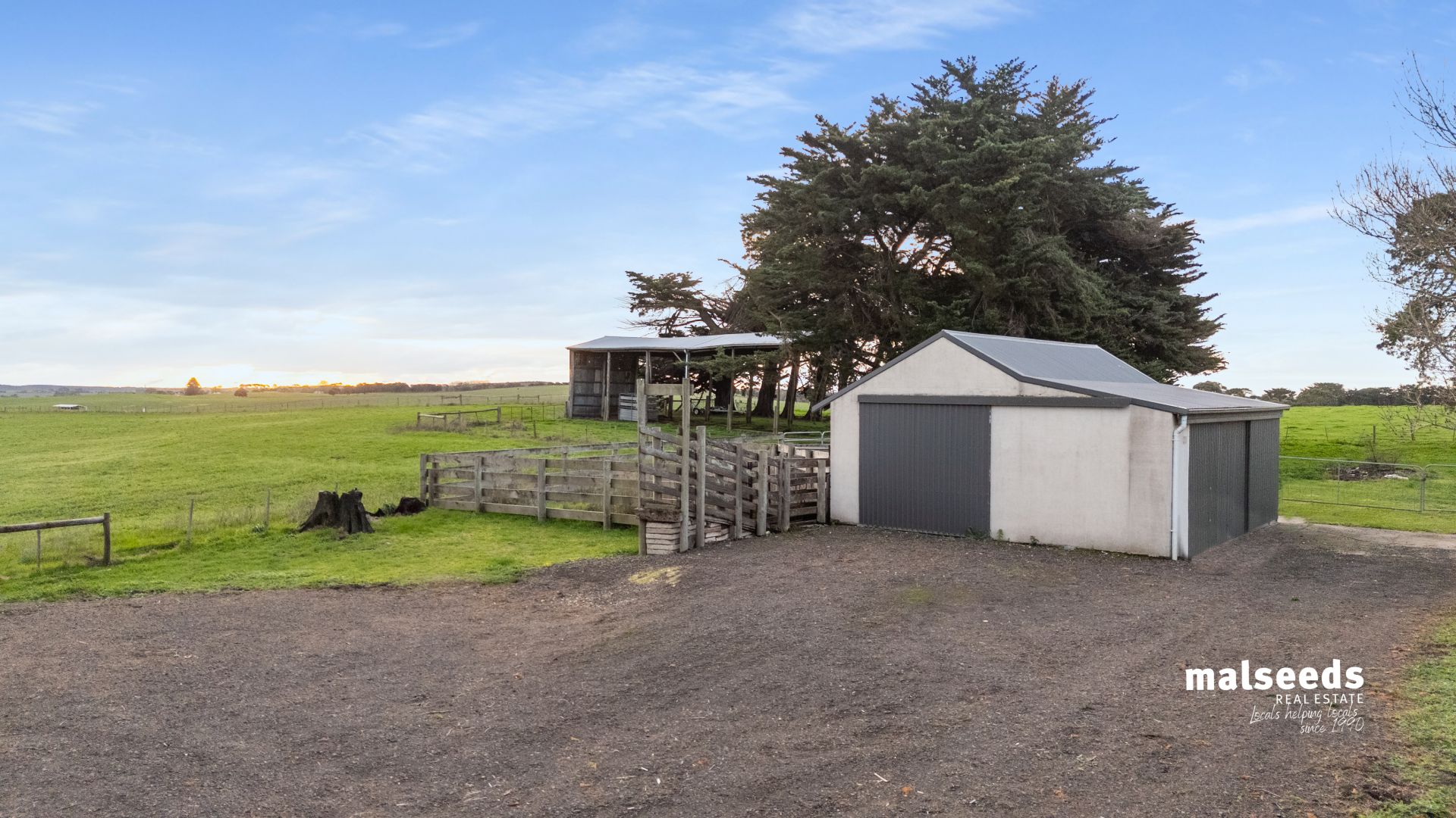 The property includes well-established shedding, ideal for storage of machinery, tools, vehicles, or rural operations.