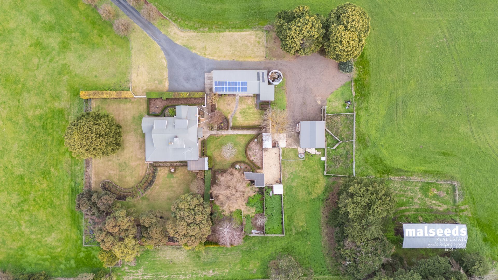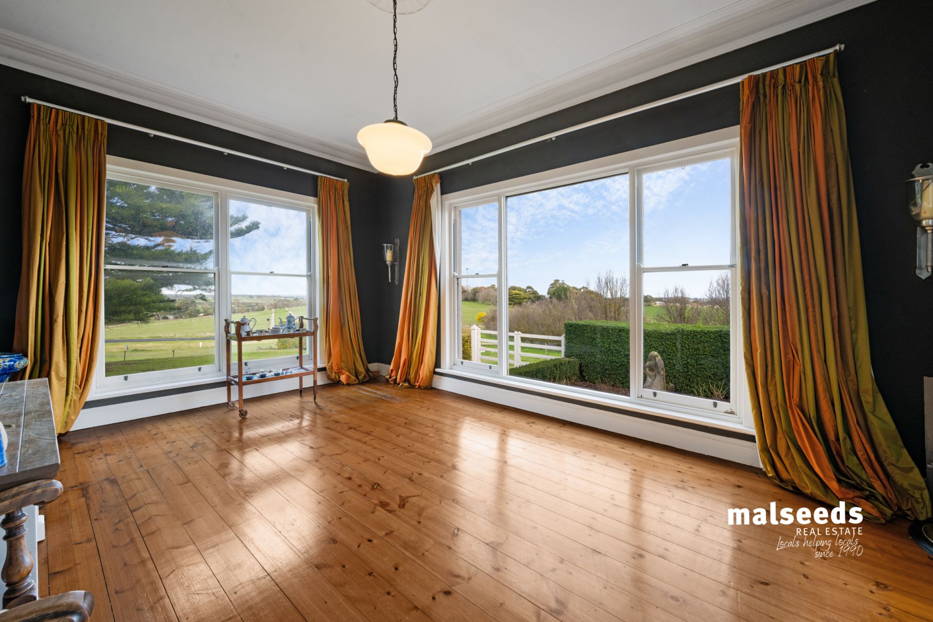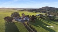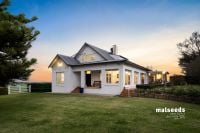 Set atop a gentle rise with sweeping panoramic views, the impressive two-storey four-bedroom residence is accessed via a sealed driveway lined with stately Manchurian pear trees. It's surrounded by a park-like garden setting, including manicured lawns, mature trees, box hedging, roses, stone wall accents, and an undercover alfresco area-ideal for entertaining in serene surrounds.