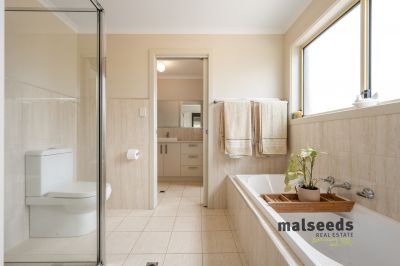 The home offers three well proportioned bedrooms, with the master bedroom featuring a walk in wardrobe, 3 speed ceiling fan and roller shutters. The remaining bedrooms are complete with built in wardrobes. A practical three way bathroom services the home, comprising a separate shower and bath, vanity area and separate toilet, along with the convenience of an additional separate toilet, making it ideal for family living.