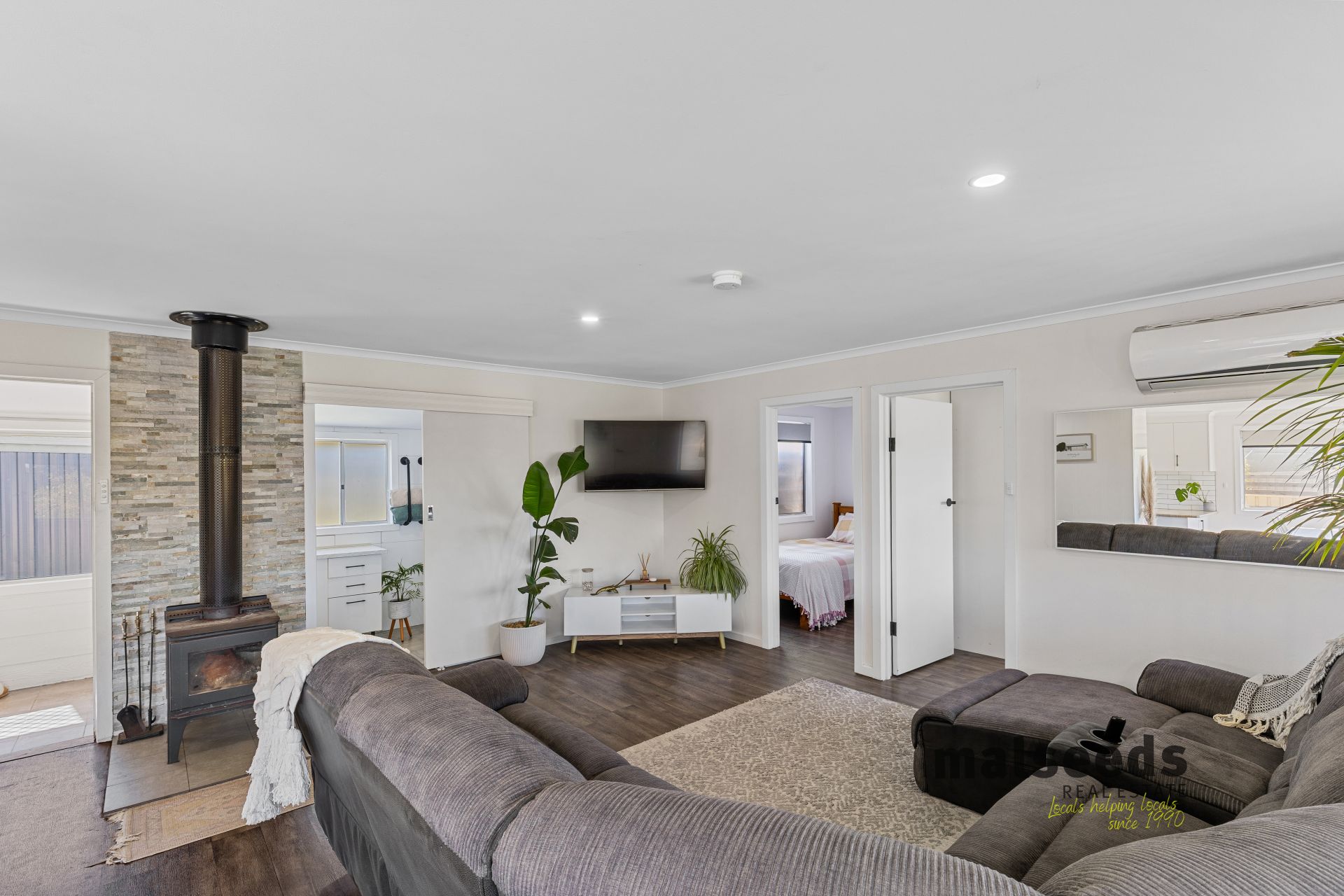 Neat, tidy and thoughtfully renovated throughout, this inviting home offers open plan kitchen, living and dining with excellent natural light from large windows. Comfort is assured year round with a slow combustion wood fire set against a striking stone feature wall, reverse cycle split system and laminate flooring throughout the entire home.