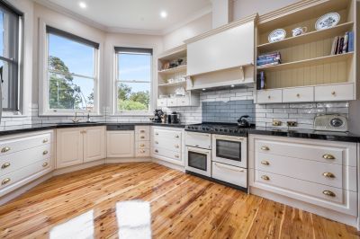 Set privately back from the road, the 1890s Mount Gambier stone homestead has been carefully renovated to blend period charm with modern comfort. The home features four bedrooms, two bathrooms, and multiple living areas centred around a wide central hallway with decorative archway. Each bedroom includes an ornate fireplace and mantel, with built-in cupboards to three rooms, the master suite offers a walk-in robe and ensuite with underfloor heating, heated towel rail, and walk-in shower.
