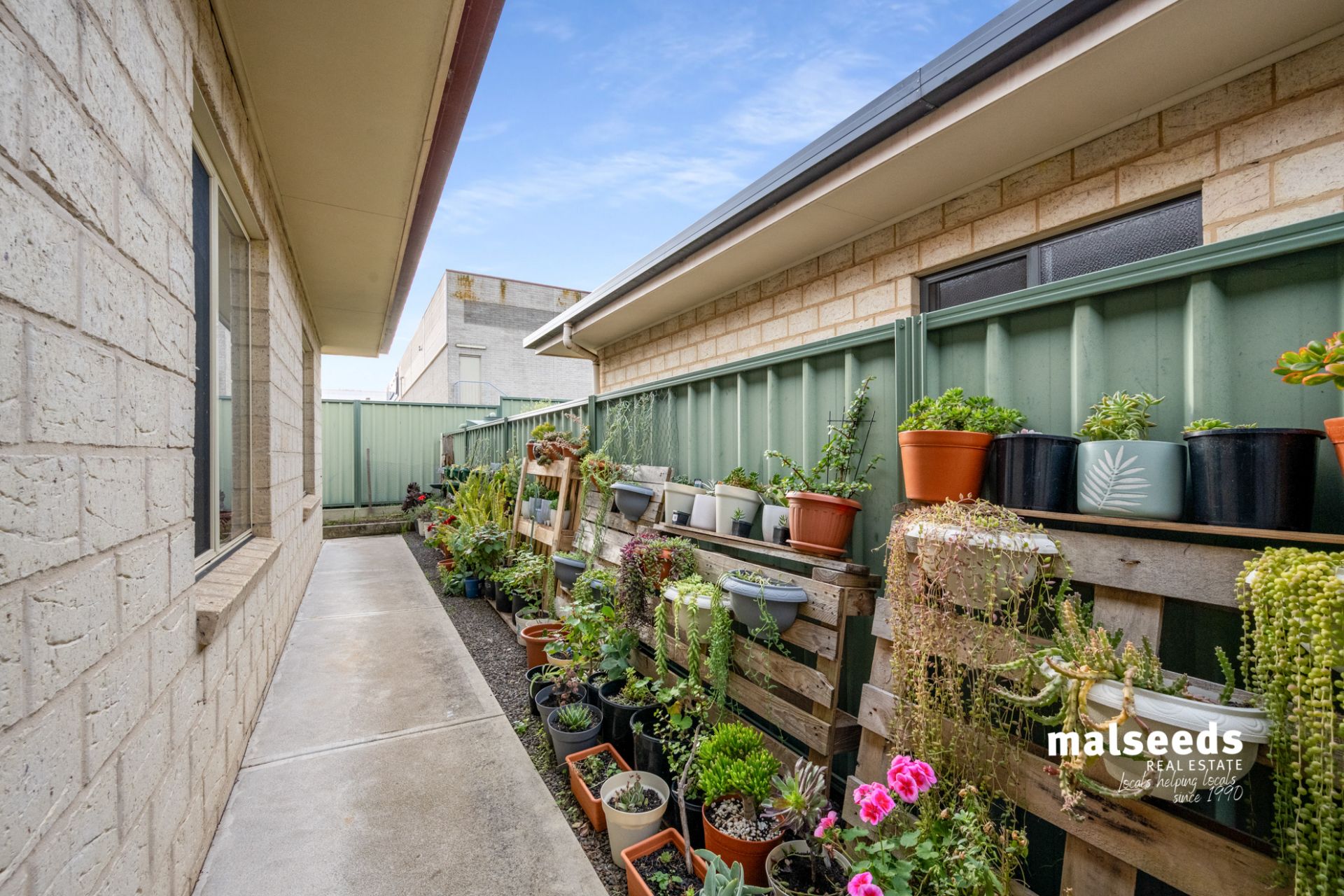 The small garden and rear yard are fenced and there is a slimline water tank situated on the side wall next to a water softener, hot water storage unit and reverse cycle external unit.