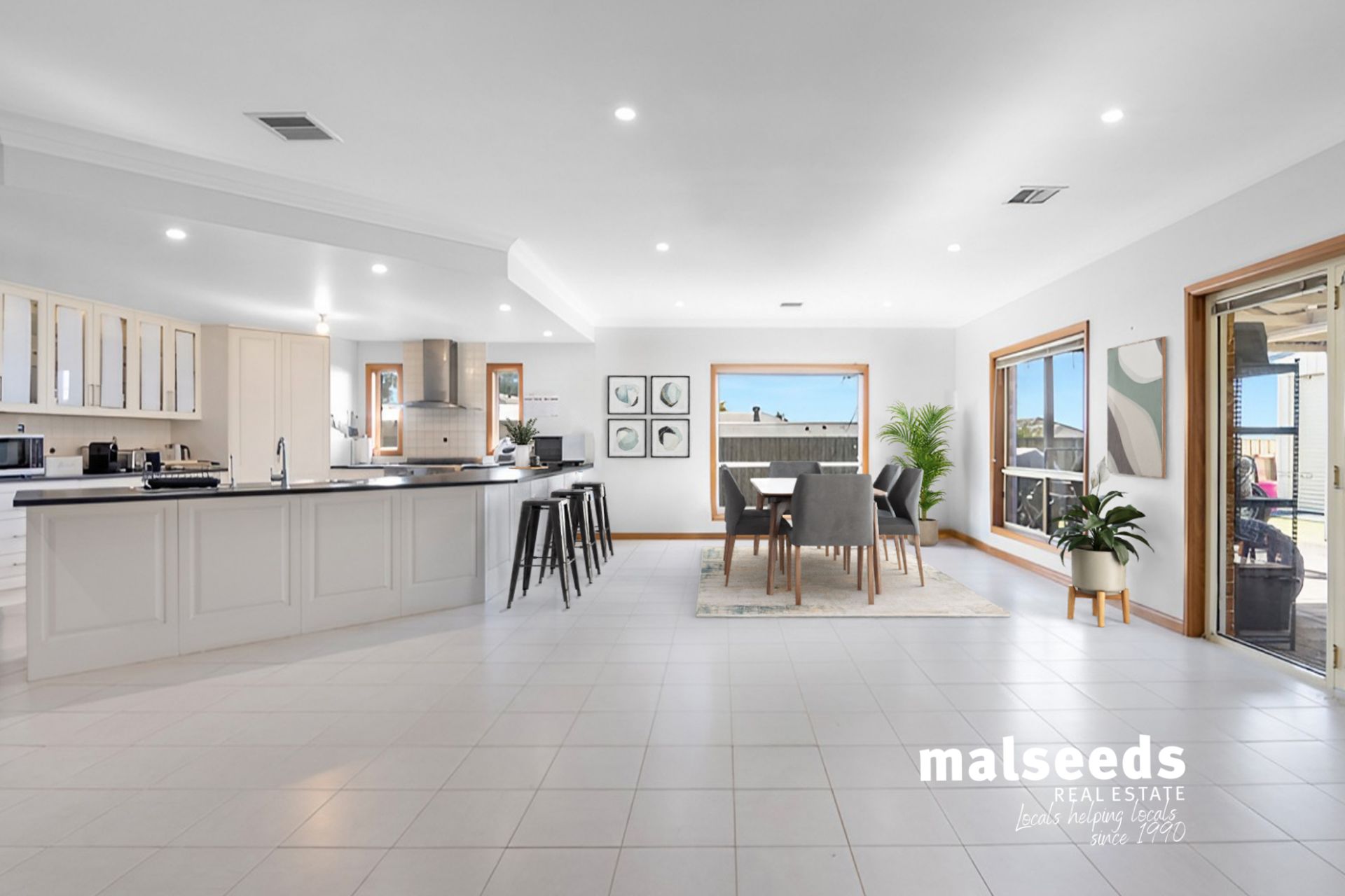 Drive into the garage that is under the main roof of the property, and walk straight into the open-plan living, dining, and kitchen area which is tiled throughout, leading to an undercover alfresco entertainment area.