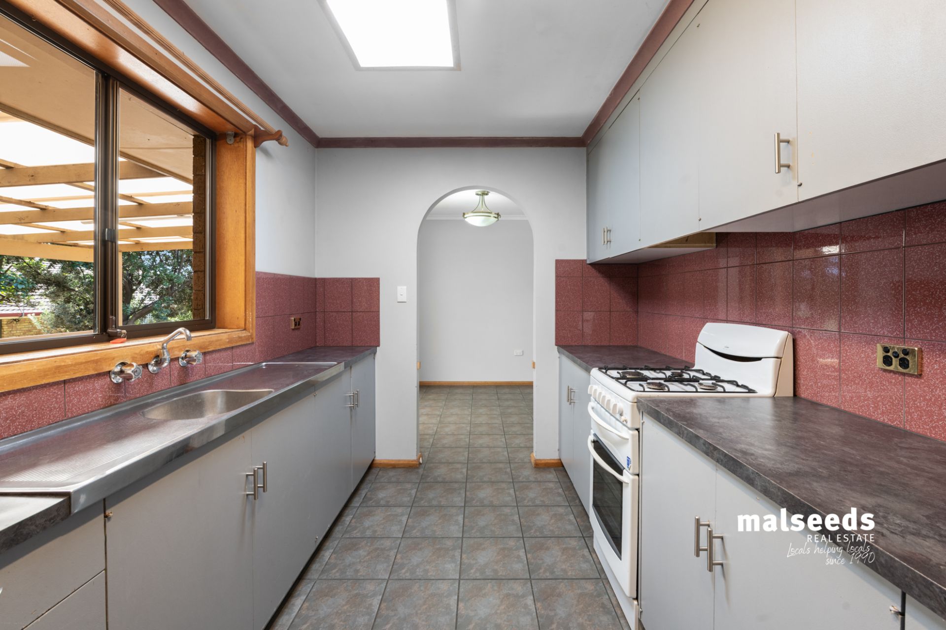 * Kitchen window serving directly into the decked area, perfect for passing food and drinks when entertaining