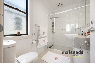 Downstairs, a versatile second living area and study nook which flows out to a private alfresco area. An outdoor shower caters perfectly for beachgoers, while a kitchenette space and wood-look heater add further comfort and flexibility. A laundry is also located on this level.
